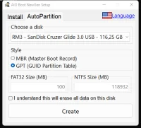 Среди особенностей AIO Boot NewGen можно отметить поддержку режимов загрузки UEFI и Legacy BIOS, поддержку нескольких разделов на USB-накопителях и поддержку создания установочных USB-накопителей Windows с интегрированными драйверами