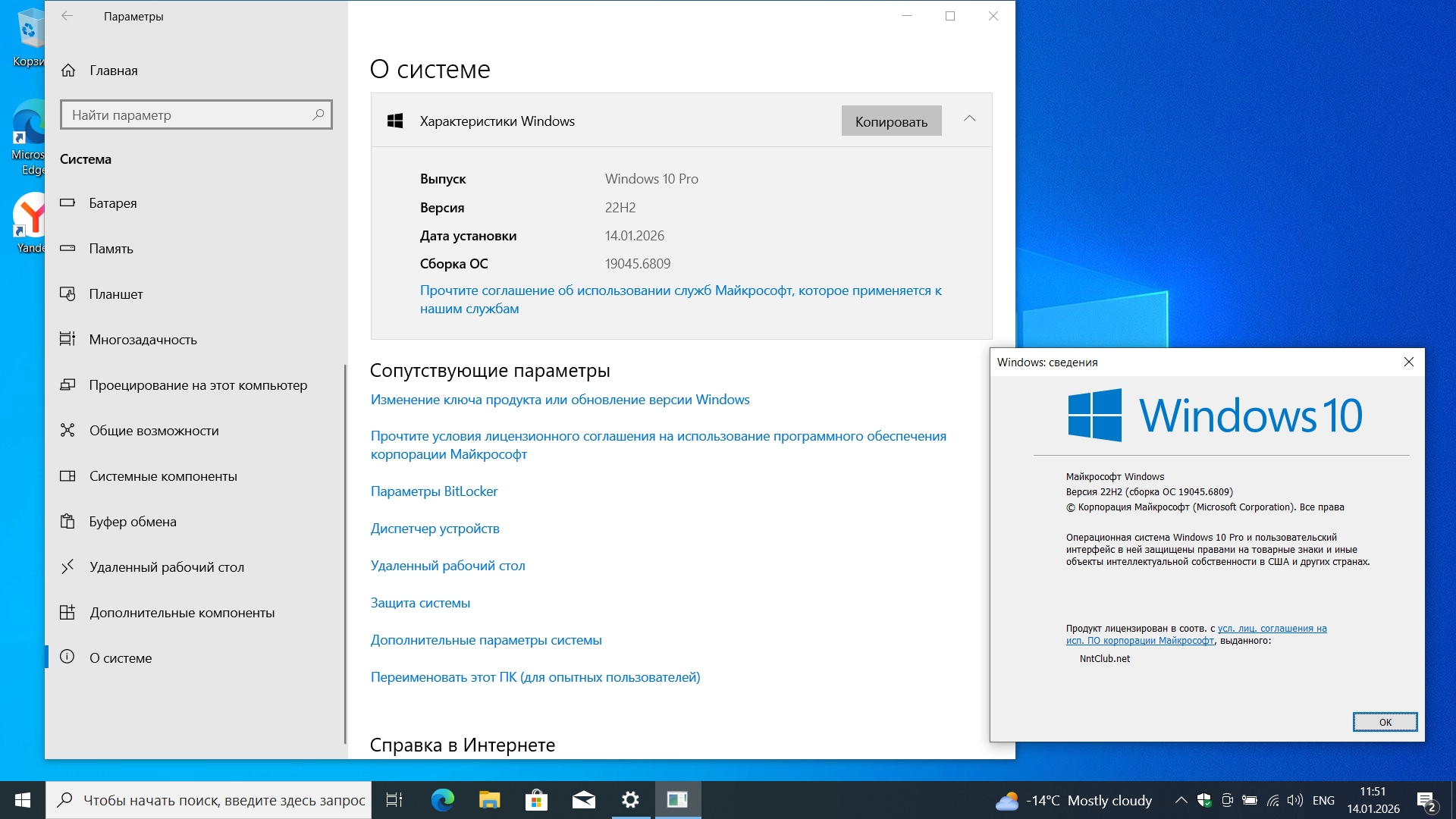Скриншоты Windows 10 Pro 22H2 Build 19045.6809 Full Январь 2026: